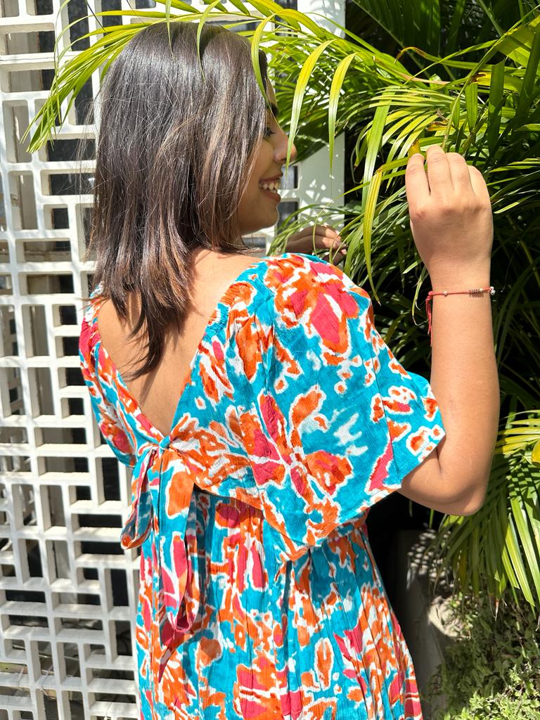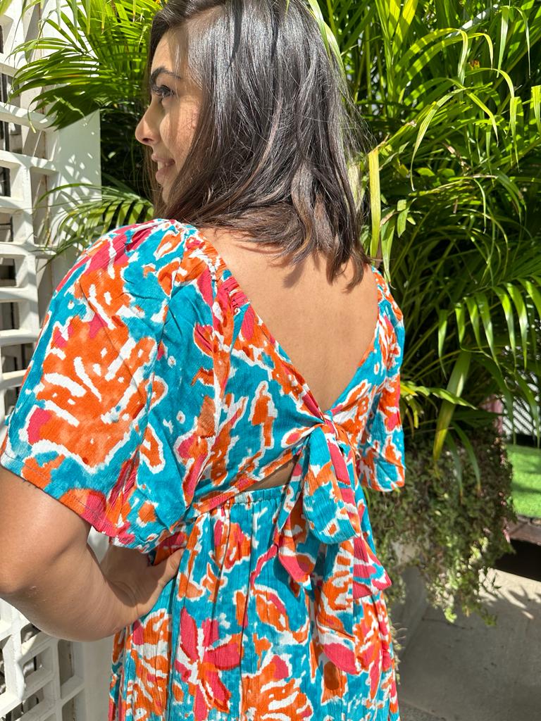 The Bahamas back tie dress is crafted in cotton crepe in the most summer-loving print.