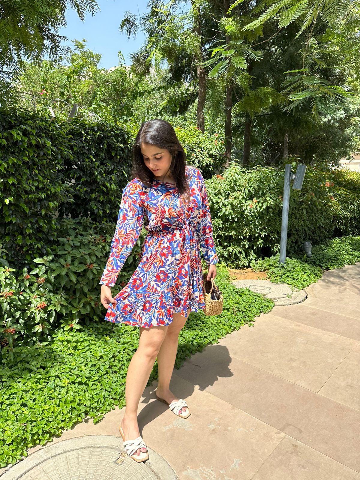 Transport to Brazil with the colourful Rio Shift Dress! Crafted in cotton crepe fabric, the dress has a self-tie detail on the neck and the waist, which adds a nice cinch.