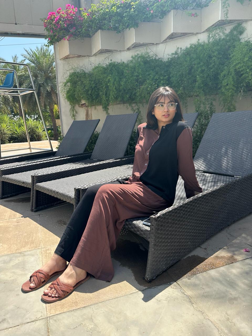 The neutral colours of the set make it a reliable pick for everyday wear and the fabric aids to comfort and breathability for the summer.