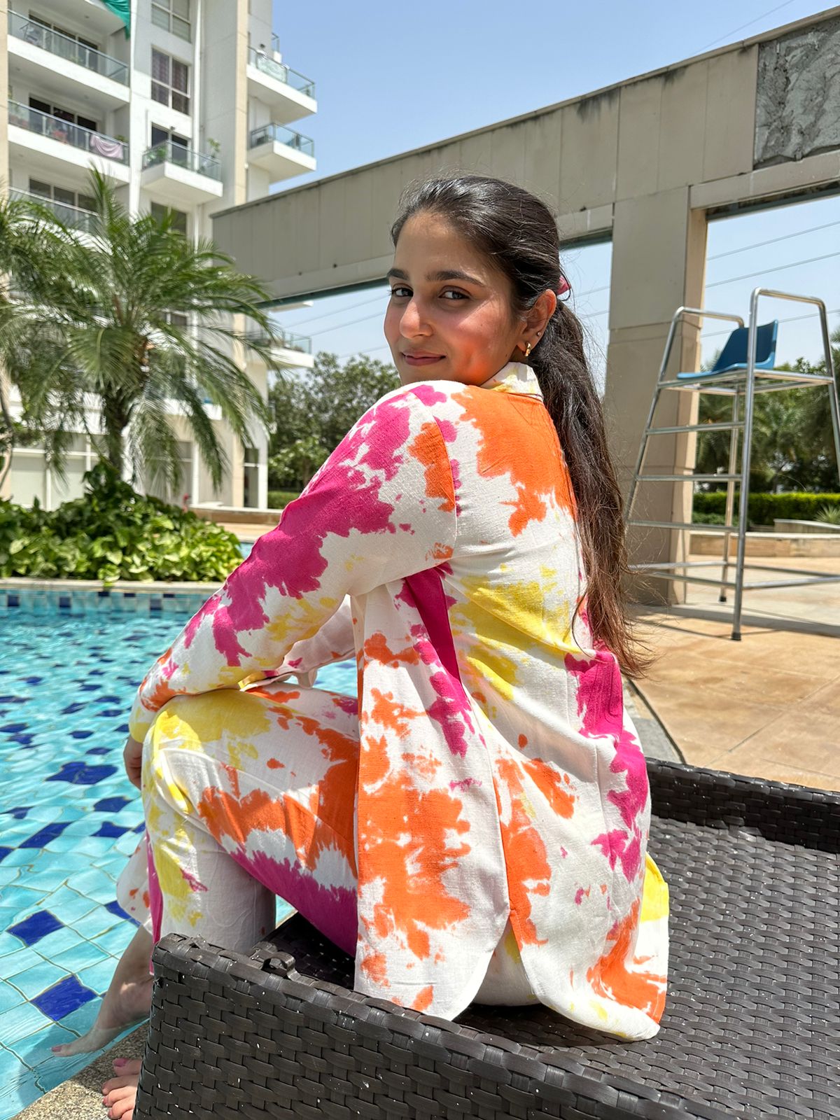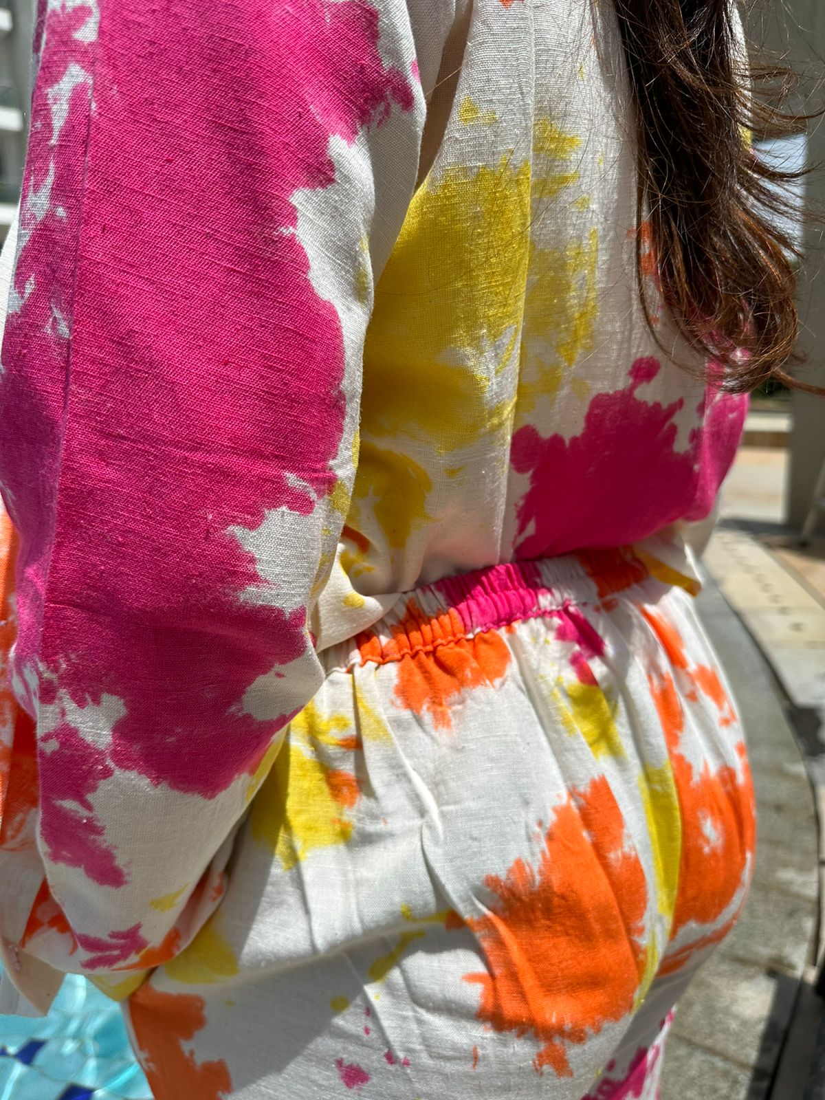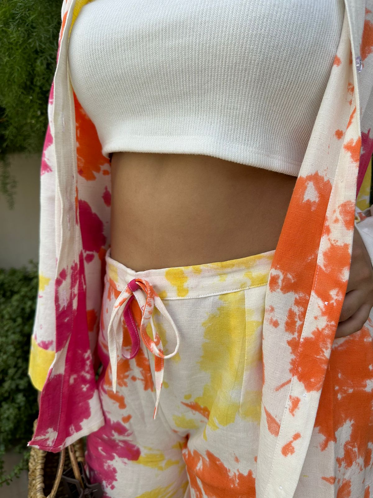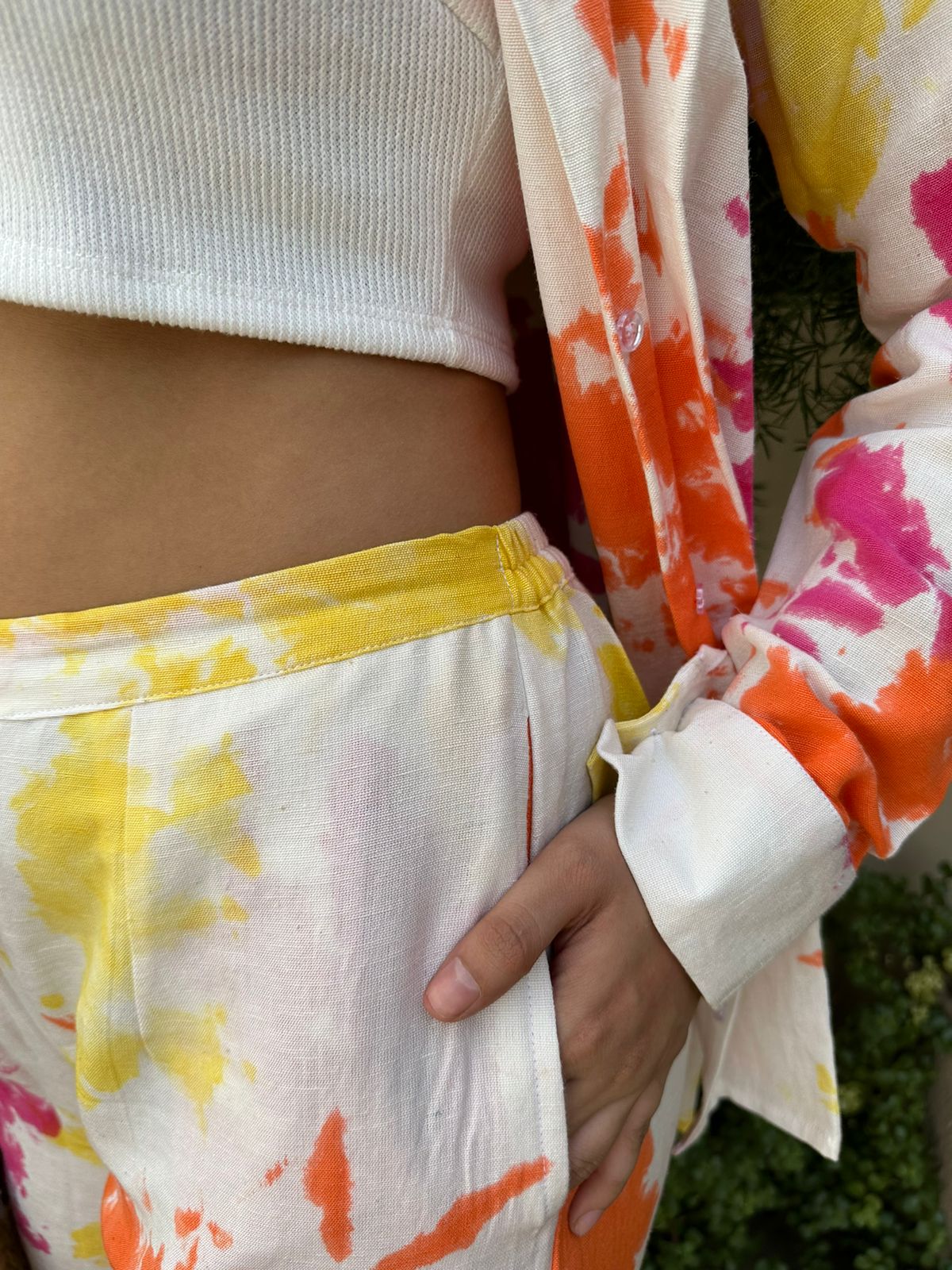 Live and look like the yummy shades of summer with our Sunrise set! The set features a relaxed-fit shirt and trousers, both made in cotton flax fabric.